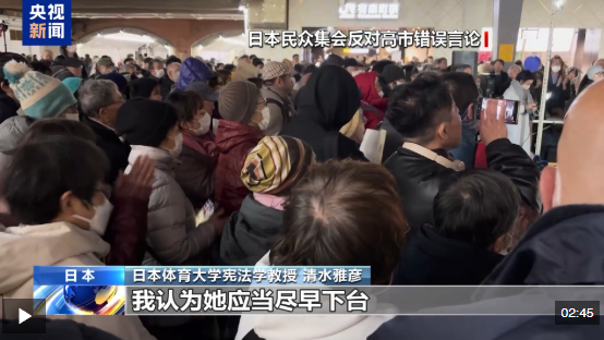 日本體育大學(xué)憲法學(xué)教授 清水雅彥:高市的相關(guān)發(fā)言無論從日本安保法案,還是《聯(lián)合國憲章》的角度來看,都存在嚴(yán)重問題。從這個(gè)意義上講,高市早苗否定《中日聯(lián)合聲明》,無視法律并且暴露自身無知,是東亞地區(qū)的不穩(wěn)定因素。因此,她的那番發(fā)言應(yīng)撤回,如果無法撤回,我認(rèn)為她應(yīng)當(dāng)盡早下臺。