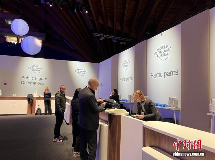 當(dāng)?shù)貢r(shí)間1月19日,世界經(jīng)濟(jì)論壇2026年年會(huì)在瑞士東部小鎮(zhèn)達(dá)沃斯拉開帷幕。圖為參會(huì)代表領(lǐng)取參會(huì)證件。中新社記者 馬秀秀 攝