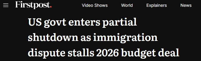 盡管美國(guó)參議院通過了聯(lián)邦政府多個(gè)部門剩余財(cái)年的撥款法案,暫時(shí)避免了政府長(zhǎng)期“停擺”,但由于眾議院因既定休會(huì)安排,無(wú)法在預(yù)算授權(quán)到期前完成表決,聯(lián)邦政府仍于當(dāng)?shù)貢r(shí)間1月31日零時(shí)進(jìn)入技術(shù)性、部分“停擺”狀態(tài)。