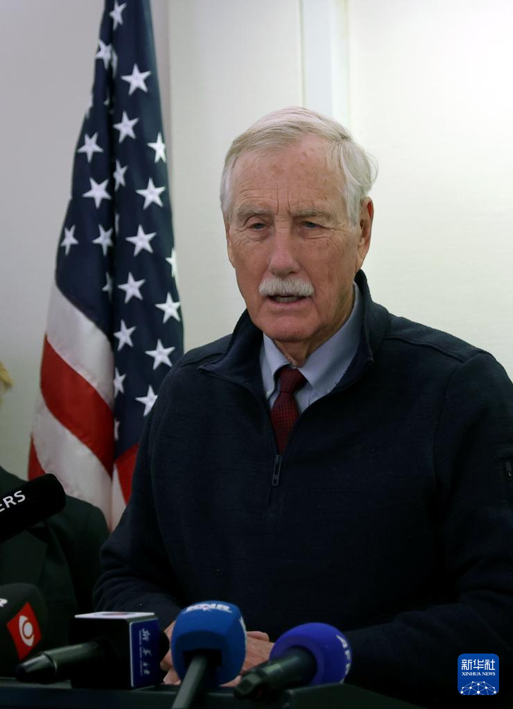 2月9日,在丹麥自治領地格陵蘭島首府努克,美國緬因州獨立參議員安格斯·金出席新聞發(fā)布會。新華社記者 李穎 攝