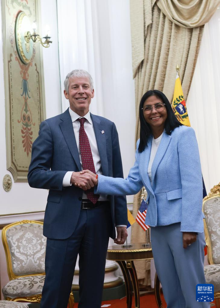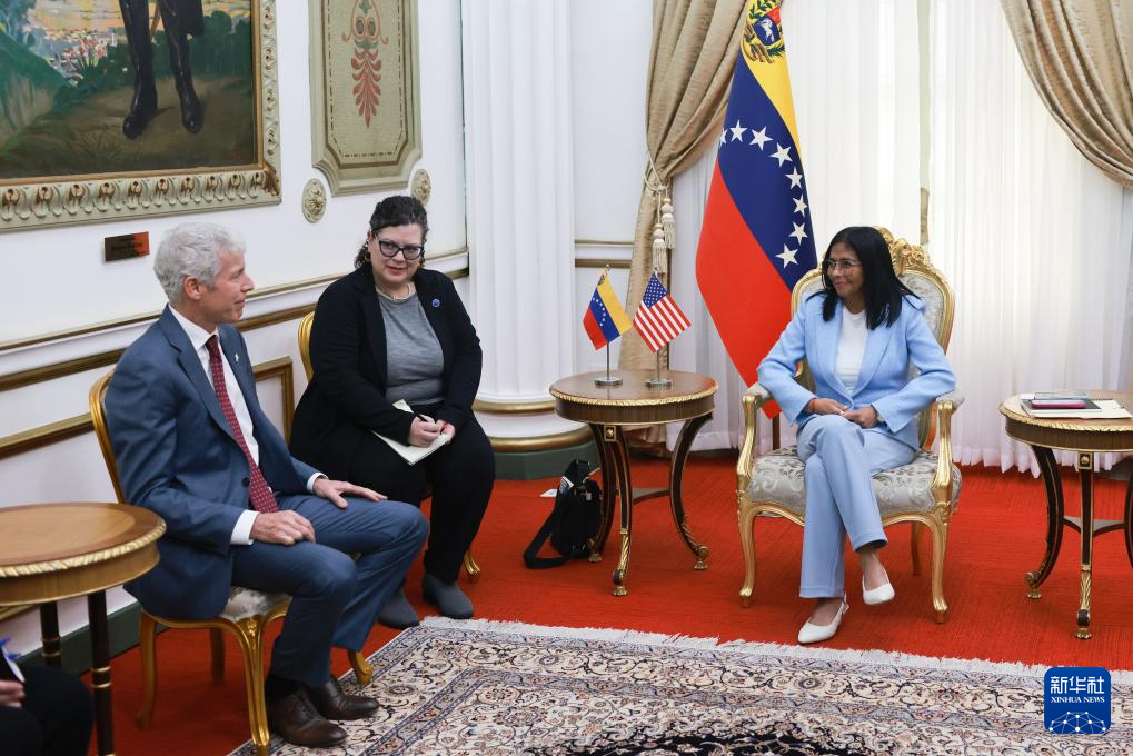 委內(nèi)瑞拉代總統(tǒng)德爾西·羅德里格斯11日在加拉加斯總統(tǒng)府會(huì)見美國(guó)能源部長(zhǎng)克里斯·賴特。
