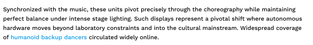 英國(guó)《衛(wèi)報(bào)》網(wǎng)站刊文稱,中國(guó)最新一代機(jī)器人的亮相彰顯了其更廣泛的技術(shù)雄心。摩根士丹利預(yù)測(cè),今年中國(guó)的人形機(jī)器人銷量將達(dá)到 2.8 萬臺(tái)。業(yè)內(nèi)人士表示,人形機(jī)器人是中國(guó)技術(shù)領(lǐng)先地位的直觀體現(xiàn),尤其是在擴(kuò)大生產(chǎn)規(guī)模方面。這種引人注目的展示可能標(biāo)志著中國(guó)制造藍(lán)圖進(jìn)入了一個(gè)新階段,“機(jī)器人技術(shù)將成為從低成本組裝向高端智能制造轉(zhuǎn)變的關(guān)鍵時(shí)期”。