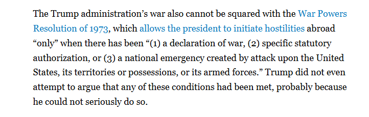 根據(jù)美國《政客》(Politico)新聞網(wǎng)報(bào)道,美國憲法規(guī)定宣戰(zhàn)權(quán)屬于國會,但此次軍事行動(dòng)并未獲得國會明確授權(quán)。特朗普政府以“消除迫在眉睫的威脅”為由發(fā)動(dòng)攻擊,但未能向國會和公眾提供伊朗即將對美國本土或海外目標(biāo)發(fā)動(dòng)具體、可驗(yàn)證襲擊的充分證據(jù)。相反,其公開言論引用的案例多為數(shù)十年前舊事,與“迫在眉睫”的法律定義相去甚遠(yuǎn)。