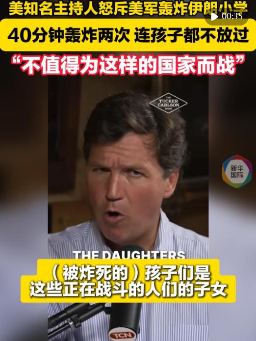 美國福克斯新聞頻道前主持人塔克·卡爾森在3月10日發(fā)布的視頻中怒斥美軍襲擊伊朗小學(xué)的行為毫無人性,直言“這樣的國家根本不值得為之戰(zhàn)斗”。