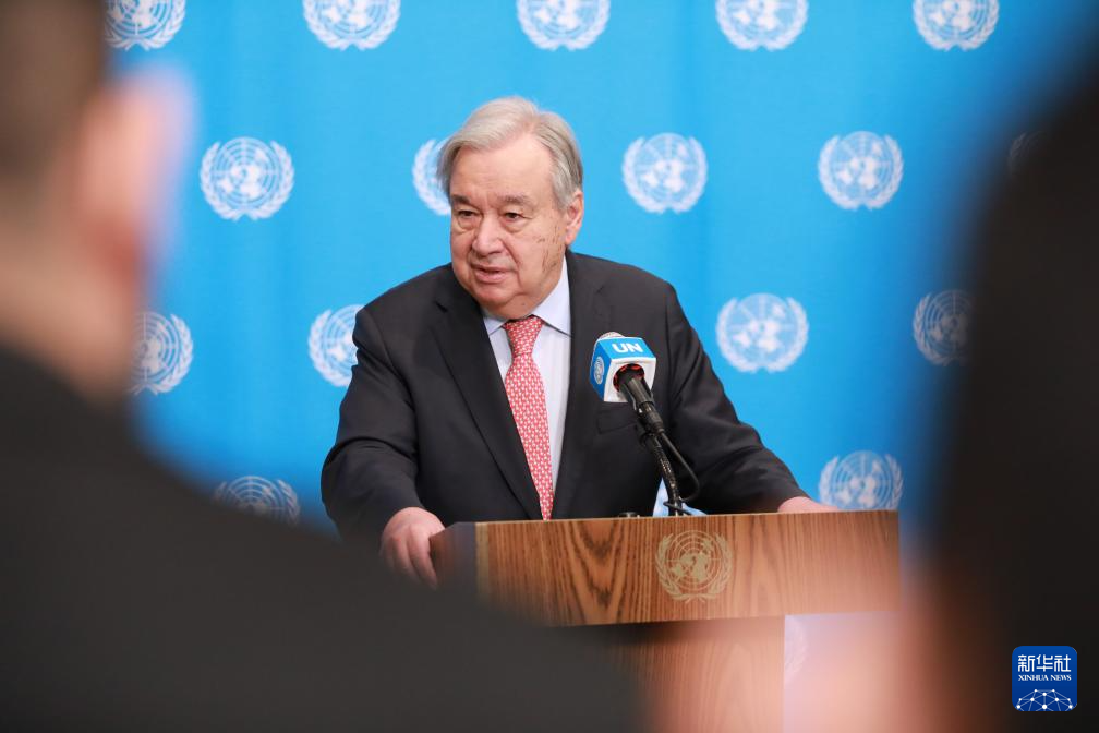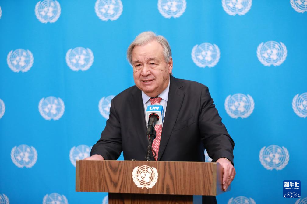 3月25日,聯(lián)合國秘書長古特雷斯在位于紐約的聯(lián)合國總部舉行的記者會(huì)上講話。新華社記者 謝鍔 攝