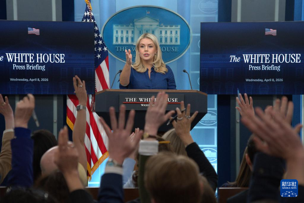 4月8日,在美國(guó)首都華盛頓白宮,白宮新聞秘書萊維特出席記者會(huì)。新華社發(fā)(李源清攝)