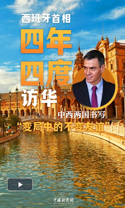 4月11日,西班牙首相桑切斯時隔一年再度抵達中國,開啟自2023年以來的第四次訪華之旅?;赝ń话雮€多世紀,中西歷經(jīng)國際風(fēng)云變幻,始終堅持相互尊重、平等相待,為不同歷史文化、不同社會制度國家間的友好相處樹立了典范。從高層互動“大滿貫”到經(jīng)貿(mào)合作加速度,中西關(guān)系持續(xù)升溫。此次桑切斯再度訪華,是中西兩國在變亂交織的國際局勢中,攜手書寫的“不變友誼”新篇章。(馮小妍 王璐瑤)