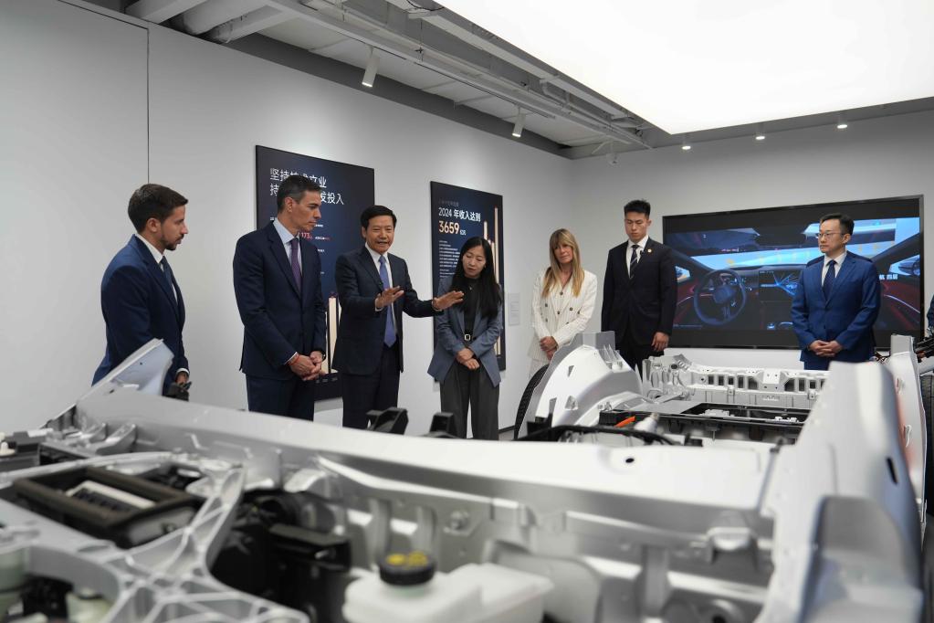 4月13日,西班牙首相桑切斯在北京的小米科技園參觀。新華社記者 馬曉冬 攝