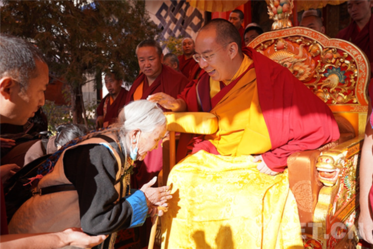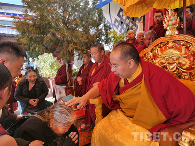 中國(guó)西藏網(wǎng)訊 11月13日至14日,全國(guó)政協(xié)常委、中國(guó)佛教協(xié)會(huì)副會(huì)長(zhǎng)、中國(guó)佛協(xié)西藏分會(huì)會(huì)長(zhǎng)班禪額爾德尼?確吉杰布在西藏日喀則市扎什倫布寺多加大院為信教群眾摸頂賜福,這是近年來(lái)規(guī)模最大的一次班禪摸頂賜福活動(dòng)。圖為班禪摸頂賜福 攝影:王淑(中國(guó)西藏網(wǎng) 記者/王淑 賈華加)