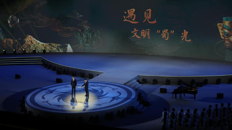 四川省文物考古研究院舊石器考古研究所所長、皮洛遺址考古領(lǐng)隊鄭喆軒和四川省文物考古研究院三星堆遺址工作站站長、三星堆博物館副館長冉宏林講述《遇見文明“蜀”光》 楊曉恒攝