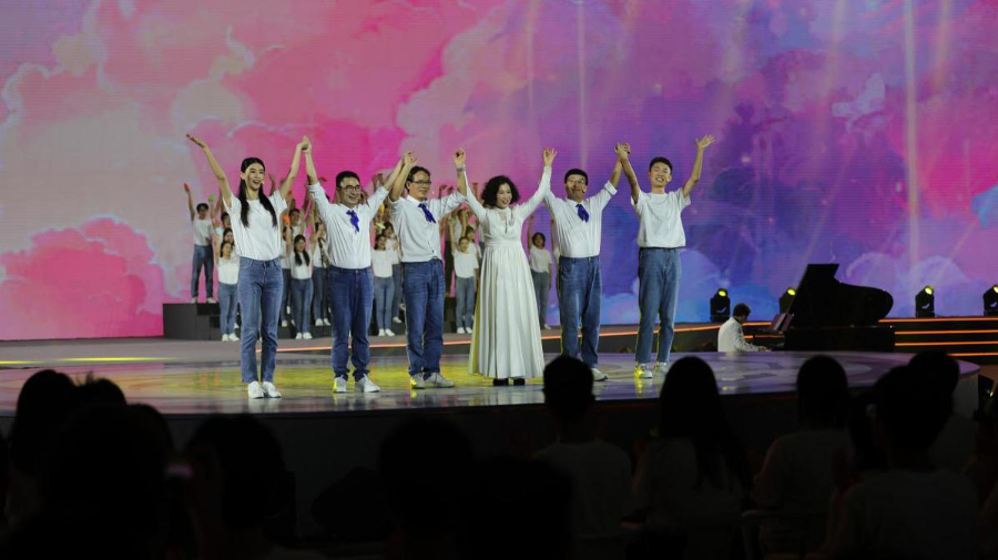 電子科技大學(xué)學(xué)生合唱團與退休教職工組成的銀杏合唱團共同演繹《一路生花》 楊曉恒攝