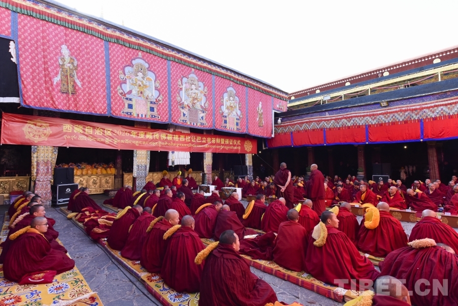 中國西藏網(wǎng)訊 4月5日上午,2026年度藏傳佛教格魯派學經(jīng)僧人考核晉升格西拉讓巴學位立宗答辯暨頒證儀式在拉薩大昭寺舉行。獲得2026年度藏傳佛教格魯派格西拉讓巴學位立宗答辯資格的考僧、考評委員會成員、陪考僧人等278人參加儀式。(中國西藏網(wǎng) 記者/趙振宇 德吉卓瑪 次旦拉姆)