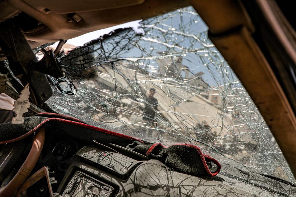 這是4月6日在加沙城拍攝的遭以軍空襲后被毀的車輛。新華社發(fā)(里澤克·阿卜杜勒賈瓦德攝)