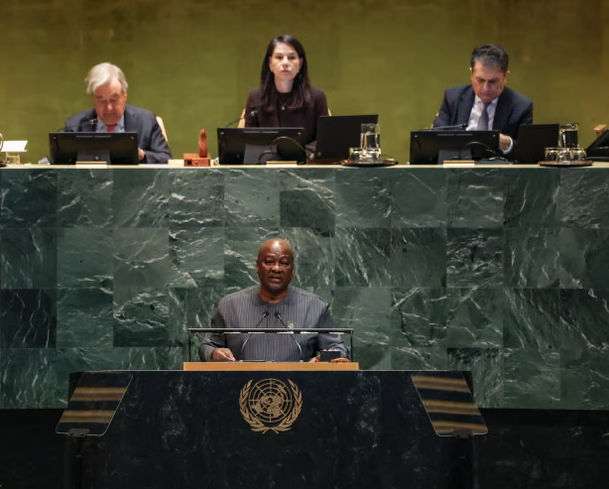 3月25日投票前,加納總統(tǒng)約翰·德拉馬尼·馬哈馬在紐約聯(lián)合國(guó)大會(huì)發(fā)表講話。