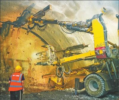 新渝萬高鐵長嶺崗隧道應用三臂鑿巖臺車等機械化設備進行施工。以上圖片均為任達禹攝(人民視覺)