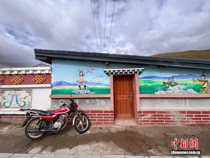在傳承中煥發(fā)新生的,還有深入牧民生活的格薩爾文化。走進(jìn)果洛甘德縣江千鄉(xiāng)恰曲那村,民居外墻上一幅幅彩繪,生動講述著戰(zhàn)神格薩爾王從幼年至稱王的傳奇。