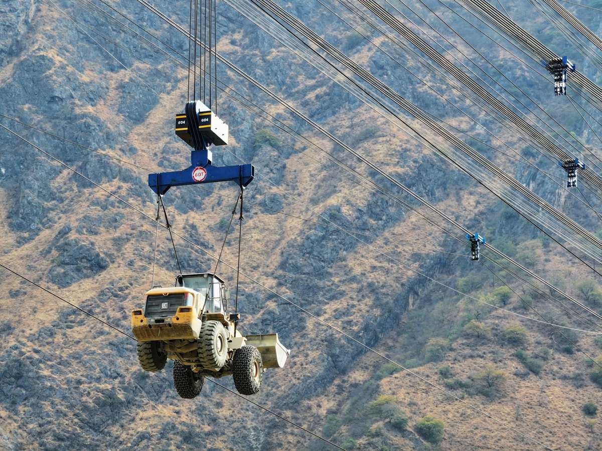 15噸輔助纜索吊——“搭建骨架”。在臨時(shí)索道完成基礎(chǔ)物料運(yùn)輸后,2套15噸輔助纜索吊于2025年8月接力進(jìn)場(chǎng),核心任務(wù)是搭建木里岸作業(yè)鋼平臺(tái)、隧道錨洞口操作架等關(guān)鍵設(shè)施,并承擔(dān)中小型設(shè)備轉(zhuǎn)運(yùn)、施工渣土短途運(yùn)輸?shù)裙ぷ?,?0噸主纜索吊系統(tǒng)安裝和后續(xù)施工提供作業(yè)基礎(chǔ)。