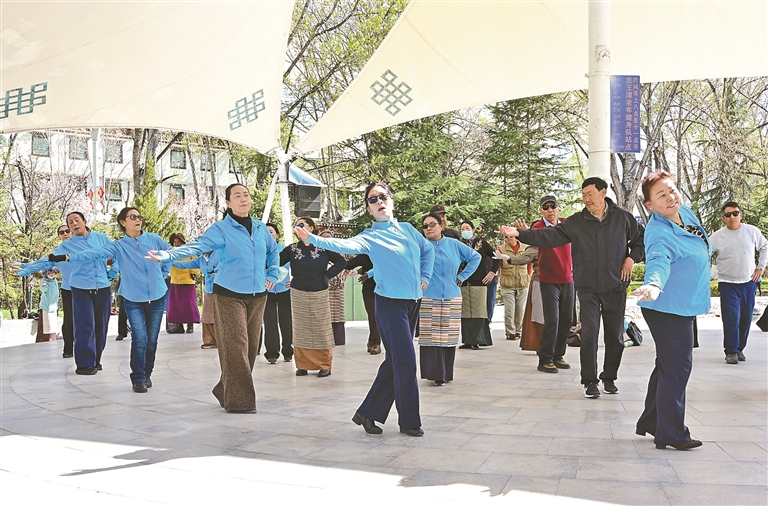 宗角祿康公園內(nèi),春日風(fēng)光靈動(dòng)又愜意。湖面碧波蕩漾,嫩綠垂柳輕拂水面,一艘艘游船悠然穿行于碧波之上,船上游客歡聲笑語不斷。岸邊廣場上,歡快的音樂此起彼伏,不少市民伴著節(jié)拍跳起健身操,舞步輕盈、神采飛揚(yáng),悠然閑適的靜態(tài)美景與熱情洋溢的動(dòng)態(tài)活力相互交融,盡顯高原春日別樣風(fēng)情。