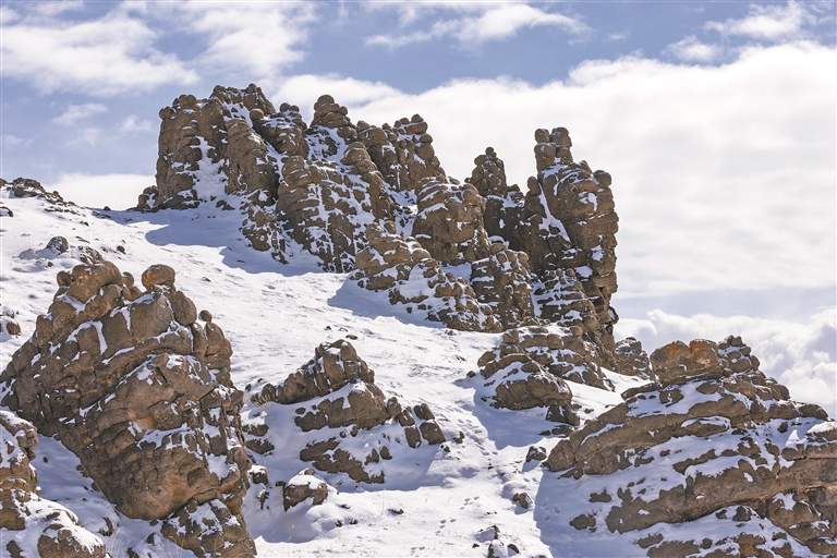 4月10日拍攝的“巴毛窮宗”地區(qū)玄武巖風(fēng)蝕柱地貌。新華社記者 姜帆 攝