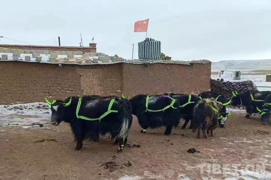 安多縣穿著反光背心的牦?!∈茉L者供圖