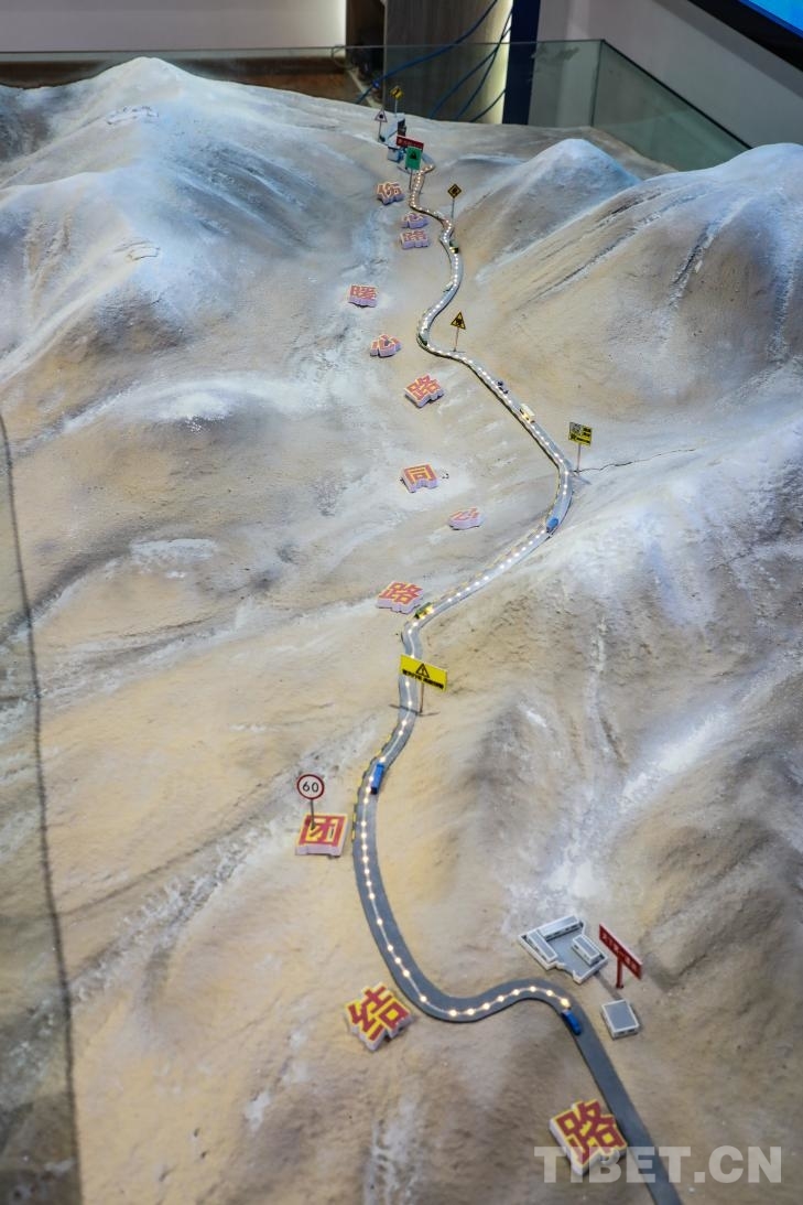 “我們守護(hù)的不僅是一條路?!痹诮痪箨犧k公樓里,秩序中隊中隊長達(dá)娃云旦指著沙盤中那條蜿蜒起伏的109國道模型,從天下第一道班至唐古拉山口,旁邊寫著“傷心路、暖心路、同心路、團(tuán)結(jié)路”——這四個詞,記錄著這條路從險到安、從冷到暖的變遷。