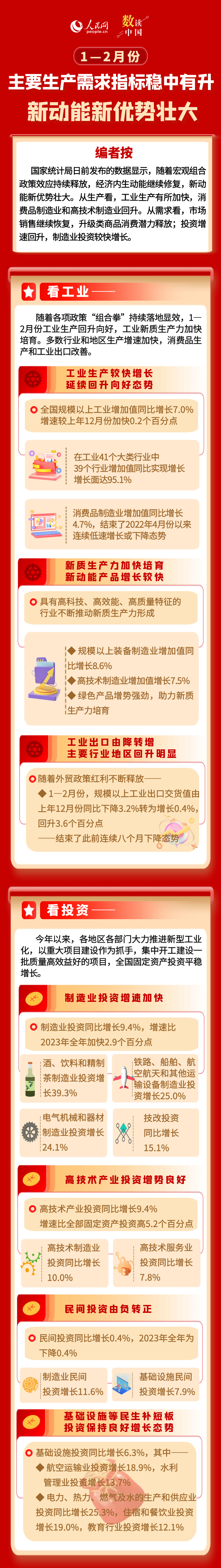 數(shù)讀中國 | 主要生產(chǎn)需求指標(biāo)穩(wěn)中有升 新動能新優(yōu)勢壯大