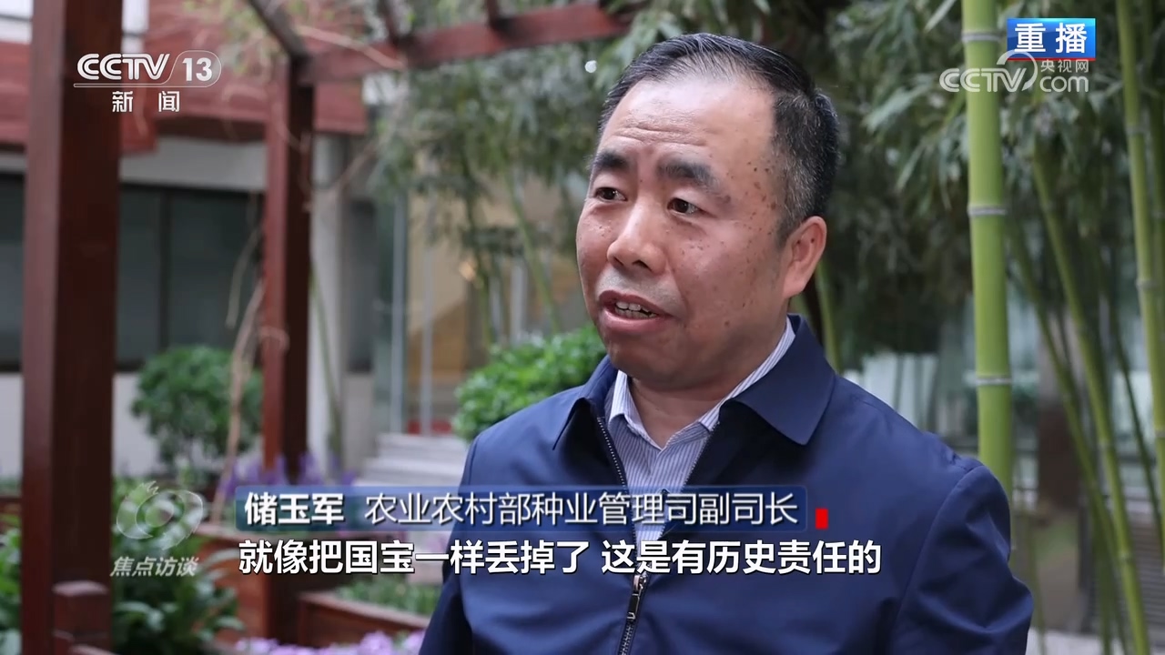 農(nóng)業(yè)農(nóng)村部種業(yè)管理司副司長儲玉軍:“國家?guī)焓菄仄?,種質(zhì)資源安全黨中央國務(wù)院高度重視,如果不及時收集,喪失掉,就像把國寶丟掉了,這是有歷史責(zé)任的,所以早一天抓,早一天見效,早一天把它放在庫里才能安心。要把種源安全提升到關(guān)系國家安全的戰(zhàn)略高度,抓好種業(yè)振興,服務(wù)保障國家糧食安全。”