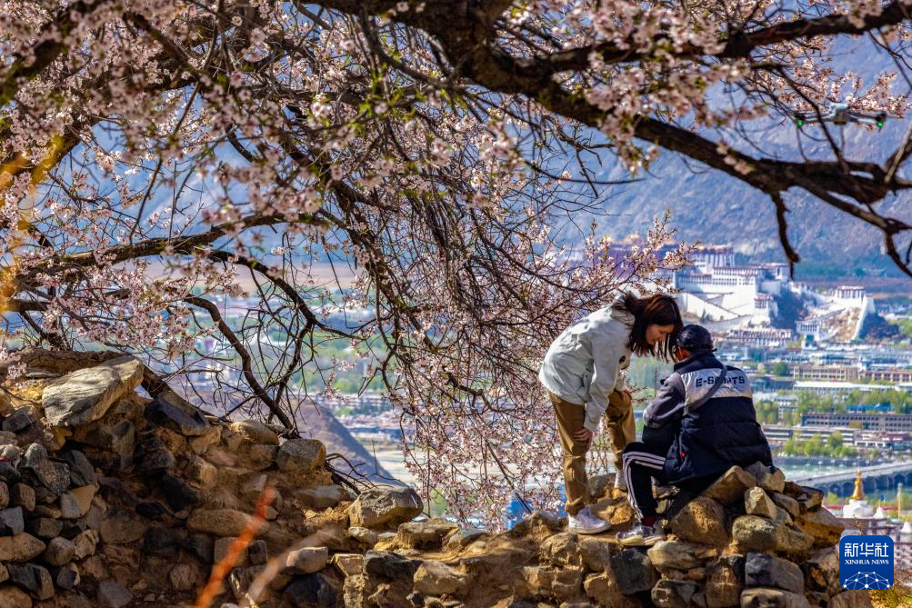 ??近日,西藏拉薩市城關區(qū)慈覺林社區(qū)的一片古桃樹進入盛花期,因其正對著布達拉宮,成為游人拍照打卡的“網紅”地。