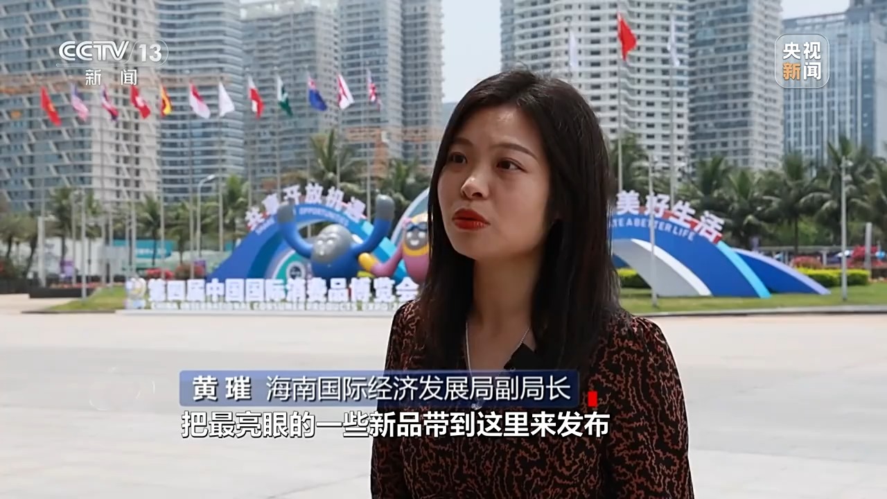 海南國際經(jīng)濟(jì)發(fā)展局副局長(zhǎng) 黃璀:我們希望更多全球品牌把最亮眼的一些新品帶到這里來發(fā)布,更好跟中國消費(fèi)市場(chǎng)進(jìn)行對(duì)接。當(dāng)然我們也希望中國的消費(fèi)精品,通過消博會(huì)新品發(fā)布舞臺(tái),讓全世界看到,通過海南自貿(mào)港、通過消博會(huì)這個(gè)平臺(tái)走向全球。
