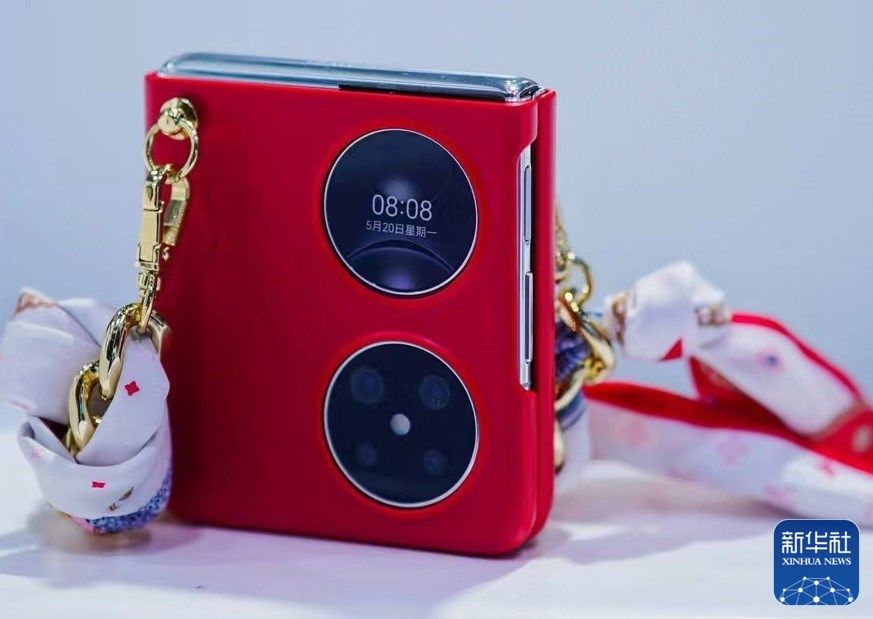 圖為華為展臺展出的新款折疊手機
