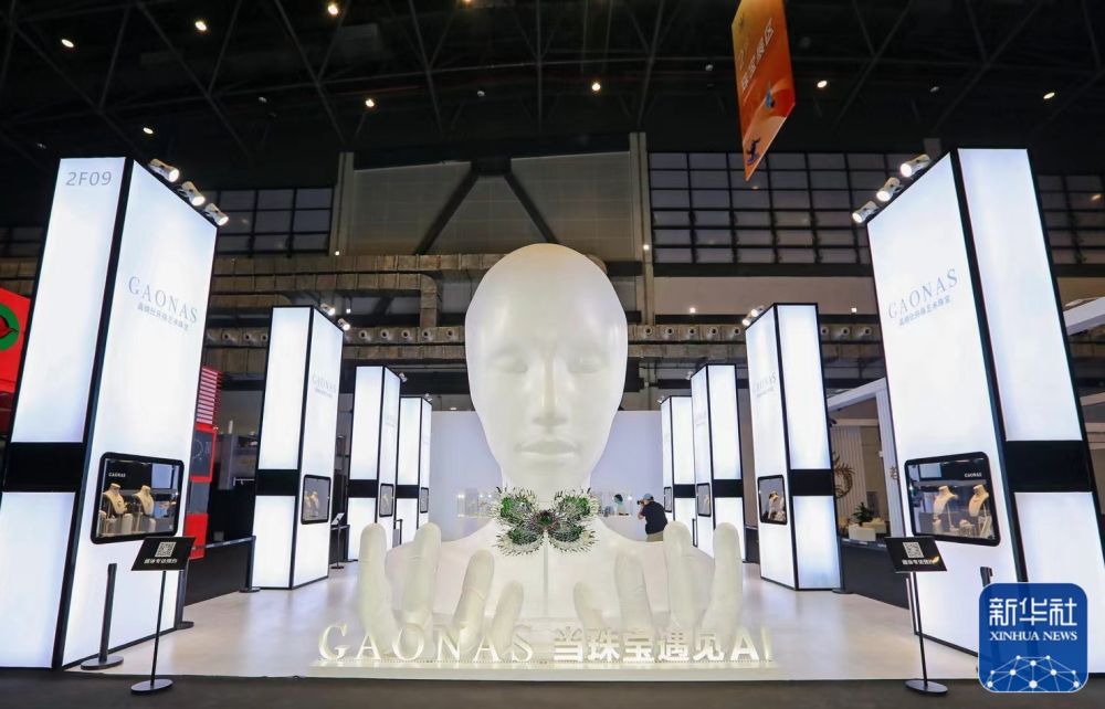 圖為消博會珠寶展臺高納仕展臺現(xiàn)場,高
