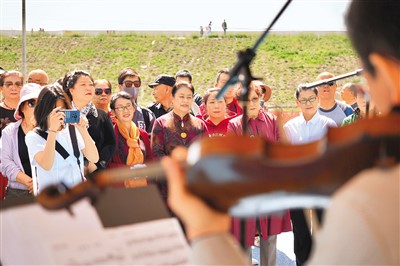 中國交響樂團(tuán)在五家渠市青格達(dá)湖開展弦樂四重奏“快閃”活動(dòng)。