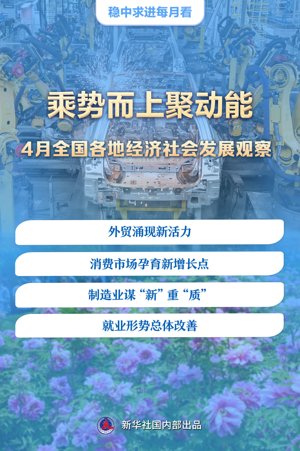 春意盎然育生機(jī)。一季度經(jīng)濟(jì)數(shù)據(jù)出爐釋放積極信號(hào),消費(fèi)市場(chǎng)亮點(diǎn)紛呈,經(jīng)濟(jì)社會(huì)發(fā)展對(duì)就業(yè)的帶動(dòng)效應(yīng)逐步顯現(xiàn)……今年4月,全國各地真抓實(shí)干,乘勢(shì)而上,進(jìn)一步鞏固和增強(qiáng)經(jīng)濟(jì)回升向好態(tài)勢(shì)。