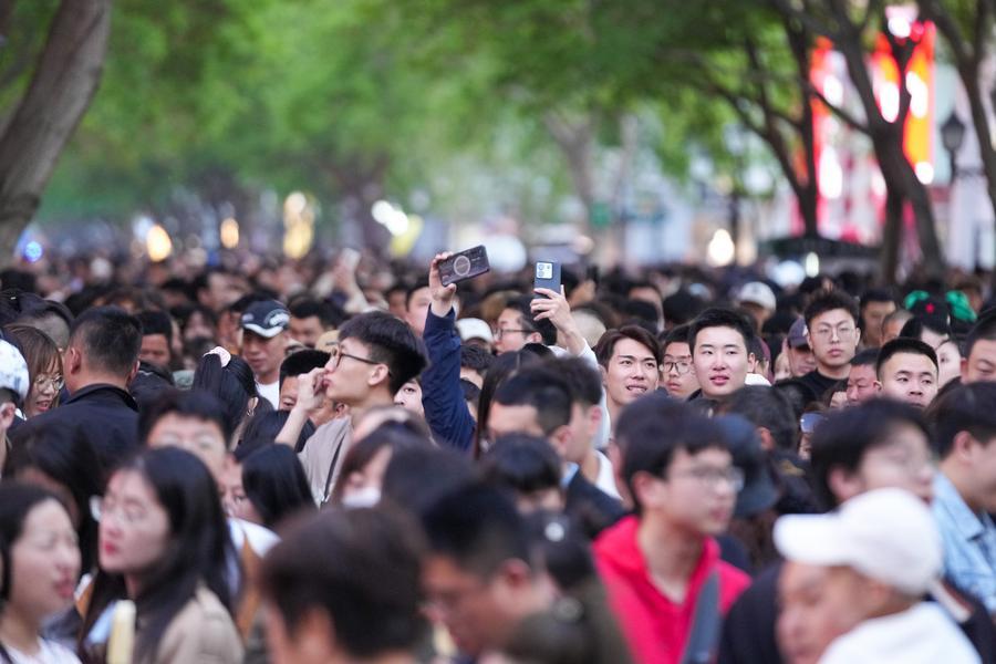 5月1日,哈爾濱中央大街上人頭攢動(dòng)。“五一”假期,文旅市場(chǎng)火熱。新華社記者 王建威 攝