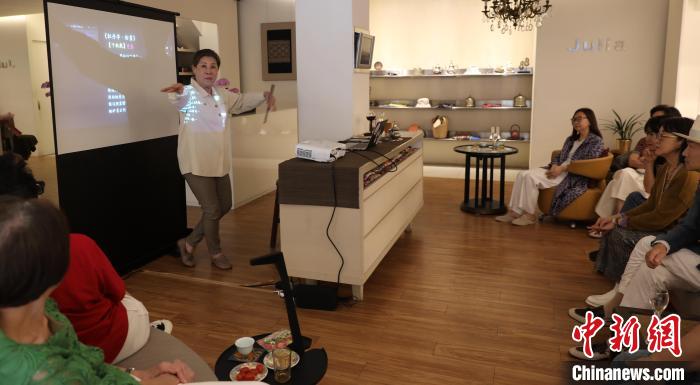 5月10日,臺灣知名藝術史學者朱惠良在臺北一個文化沙龍講述昆曲藝術。圖為朱惠良現(xiàn)場清唱《牡丹亭》名段。中新社記者 劉舒凌 攝