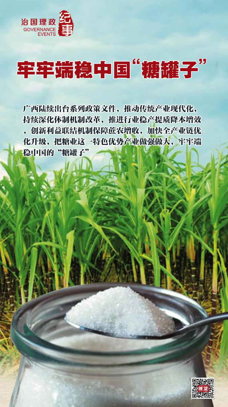 《廣西壯族自治區(qū)人民政府關(guān)于深化體制機(jī)制改革加快糖業(yè)高質(zhì)量發(fā)展的意見》《廣西糖業(yè)降本增效三年行動(dòng)計(jì)劃工作方案》《廣西深化糖料蔗良種良法技術(shù)推廣工作實(shí)施方案》……廣西陸續(xù)出臺系列政策文件,推動(dòng)傳統(tǒng)產(chǎn)業(yè)現(xiàn)代化,持續(xù)深化體制機(jī)制改革,推進(jìn)行業(yè)穩(wěn)產(chǎn)提質(zhì)降本增效,創(chuàng)新利益聯(lián)結(jié)機(jī)制保障蔗農(nóng)增收,加快全產(chǎn)業(yè)鏈優(yōu)化升級,把糖業(yè)這一特色優(yōu)勢產(chǎn)業(yè)做強(qiáng)做大,牢牢端穩(wěn)中國的“糖罐子”。