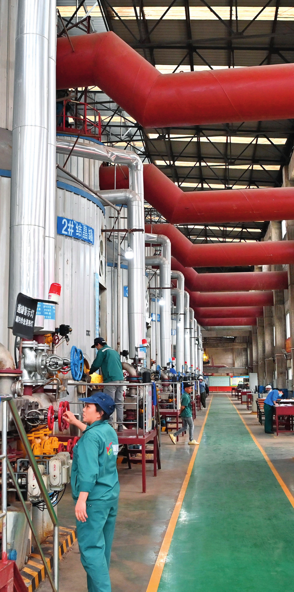 工作人員在廣西來賓小平陽湘桂制糖有限公司煮糖車間查看(2023年12月12日攝)周華攝