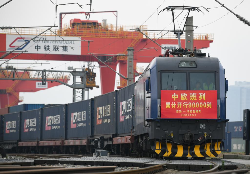 記者從中國國家鐵路集團有限公司(下稱國鐵集團)獲悉,2024年5月25日8時40分,隨著X8157次中歐班列(西安—馬拉舍維奇)從西安國際港站開出,至此中歐班列累計開行突破9萬列,發(fā)送貨物超870萬標(biāo)箱、貨值超3800億美元,保持安全穩(wěn)定暢通運行。
