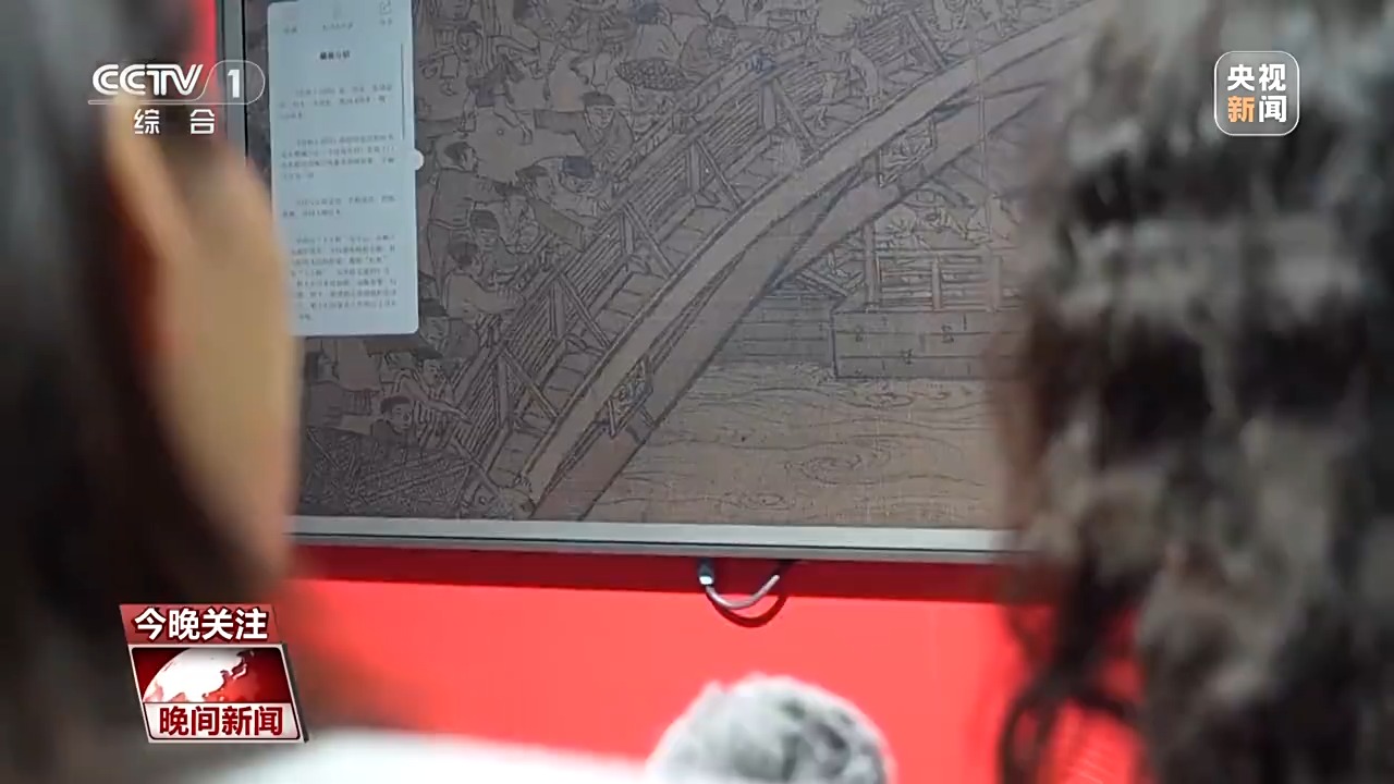 第七屆數(shù)字中國(guó)建設(shè)峰會(huì)參展商 翟芮:比如說(shuō)這幅清明上河圖,采用了超高清的采集,可以把整個(gè)畫(huà)作無(wú)限放大,比如這個(gè)細(xì)節(jié)是在橋上有兩隊(duì)人馬,他們兩個(gè)起了沖突,互不相讓?zhuān)車(chē)@些是看熱鬧的。