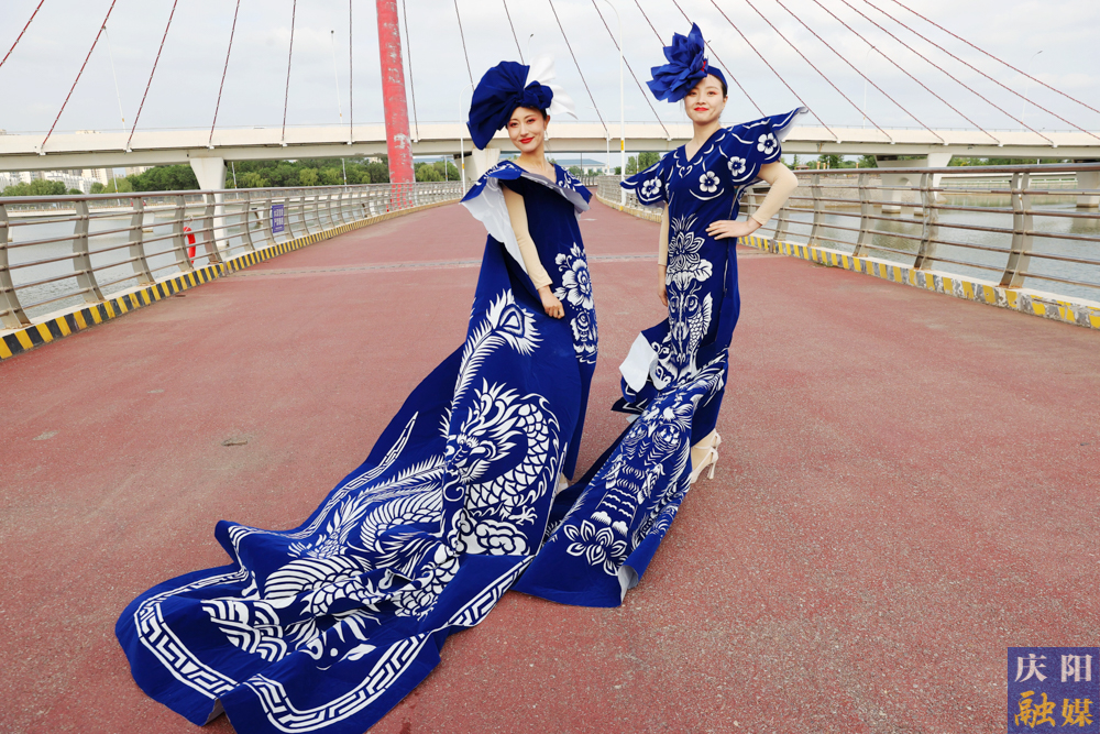 6月4日,慶陽融媒主播身著由鎮(zhèn)原縣文化館館長常燕創(chuàng)意設(shè)計(jì)的“剪云裳”慶陽剪紙系列服裝驚艷亮相。其中,“青花瓷”系列作品為全國全網(wǎng)首秀。
