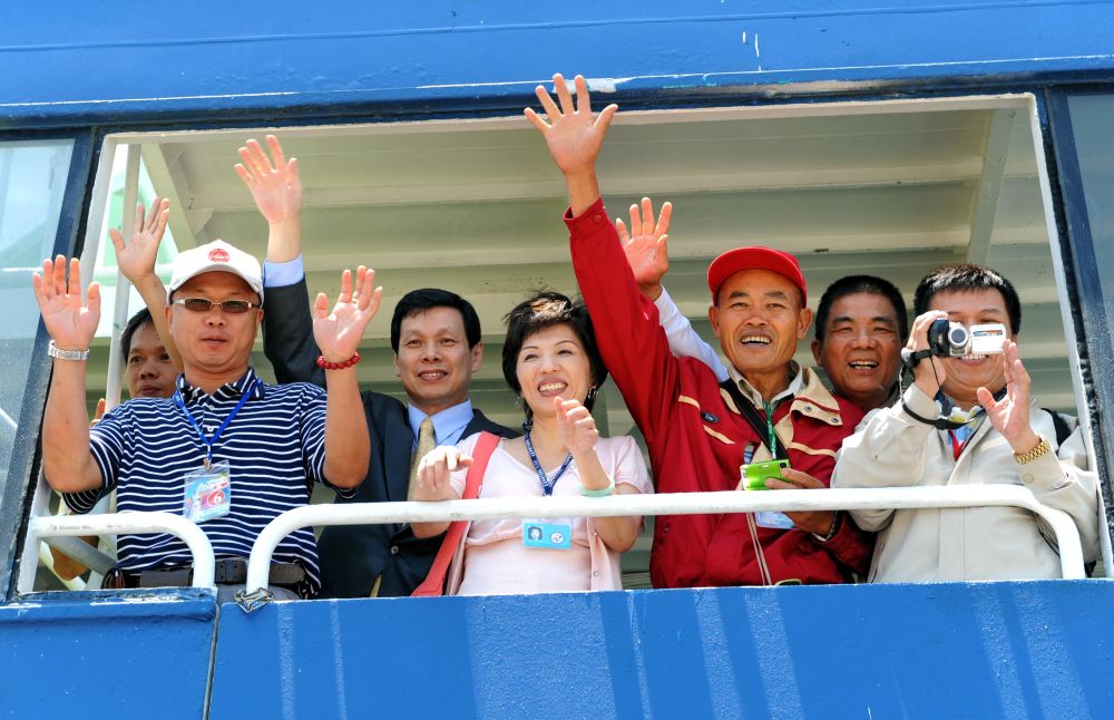 2009年5月15日,350名臺胞乘坐“海洋拉拉號”客輪從臺中港直航福建湄洲島謁祖進(jìn)香,拉開了首屆“海峽論壇”活動的序幕。新華社記者 張國俊 攝