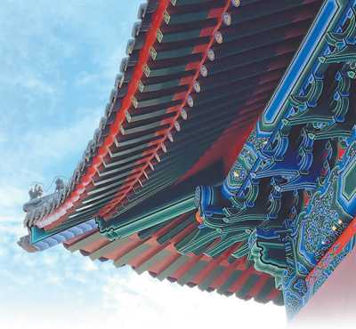 湖北十堰市武當山古建筑群現(xiàn)存古建筑66處,集中體現(xiàn)了中國元、明、清三代的建筑學和藝術成就,被譽為“中國古代建筑成就的博物館”,于1994年列入世界遺產(chǎn)名錄。圖為武當山南巖宮的飛檐斗拱。