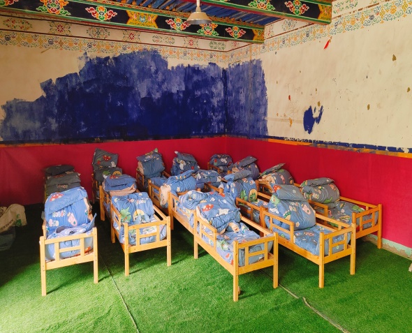 金點子,抓實干。自階段性入戶工作開展以來,駐西嘎村第十三批工作隊認真了解入戶時發(fā)現(xiàn)的村幼兒園改造未能推進的問題,現(xiàn)場走訪村幼兒園,排查村幼兒園用火、用電、用氣、食品衛(wèi)生安全隱患。在交談中,兩位教師談及幼兒園房間老舊、水泥地板凹凸不平,導致幼兒無法午休的問題,工作隊第一時間請示領導,現(xiàn)場勘察房間形狀與大小,駐村隊員自發(fā)購買并鋪就64.2平米防滑草坪地毯,以改善園內(nèi)22名幼兒生活環(huán)境,給孩子們創(chuàng)建了相對舒適、干凈的午休環(huán)境。村幼兒園教師次珍表示:“此次活動極大改善了孩子們的生活條件,感謝人行日喀則市分行駐村工作隊一直以來對村幼兒園工作的關心?!?/p>