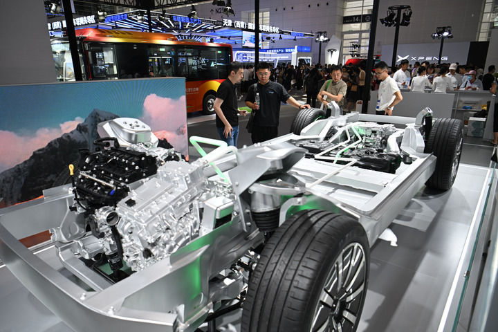 這是在博覽會(huì)現(xiàn)場拍攝的一款智能網(wǎng)聯(lián)汽車平臺(tái)架構(gòu)(6月20日攝)。新華社記者 孫凡越 攝