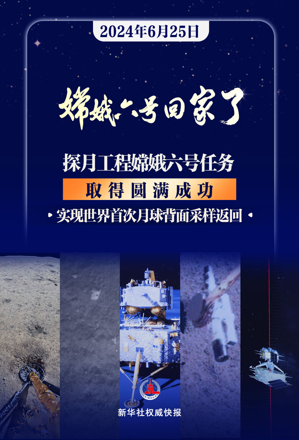 從5月3日成功發(fā)射到6月2日精準(zhǔn)著陸在月球背面“挖寶”,再到6月25日順利著陸“回家”,嫦娥六號(hào)每一個(gè)“動(dòng)作”環(huán)環(huán)相扣、順利進(jìn)行,這場(chǎng)長(zhǎng)達(dá)53天的太空探索終獲成功!