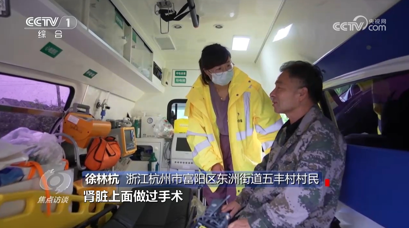 村民徐林杭剛做過腎臟手術(shù),正在家休養(yǎng)。上午10時(shí)左右,救護(hù)車來到他家,將他和另一位身體不適的村民接上車,準(zhǔn)備直接轉(zhuǎn)移到區(qū)中醫(yī)院。