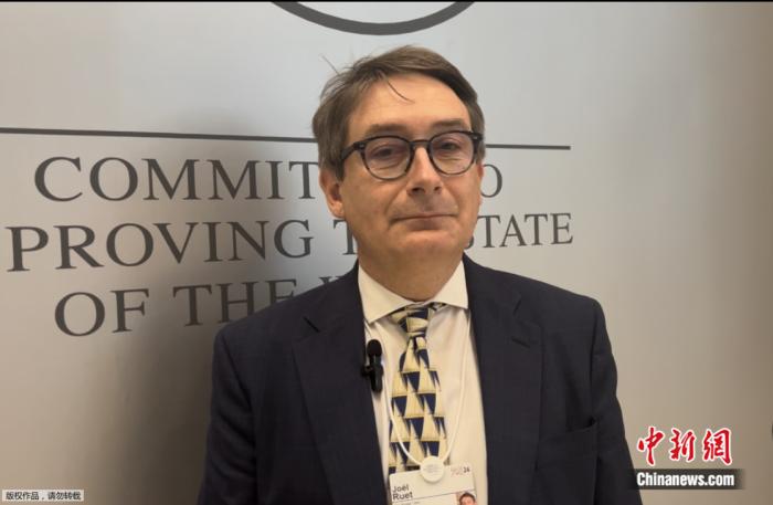 2024年6月27日,法國(guó)橋智庫主席、G20工商峰會(huì)能源工作組成員周瑞(Joel Ruet)在2024年夏季達(dá)沃斯論壇期間接受中新網(wǎng)專訪。中新網(wǎng)陳彩霞攝