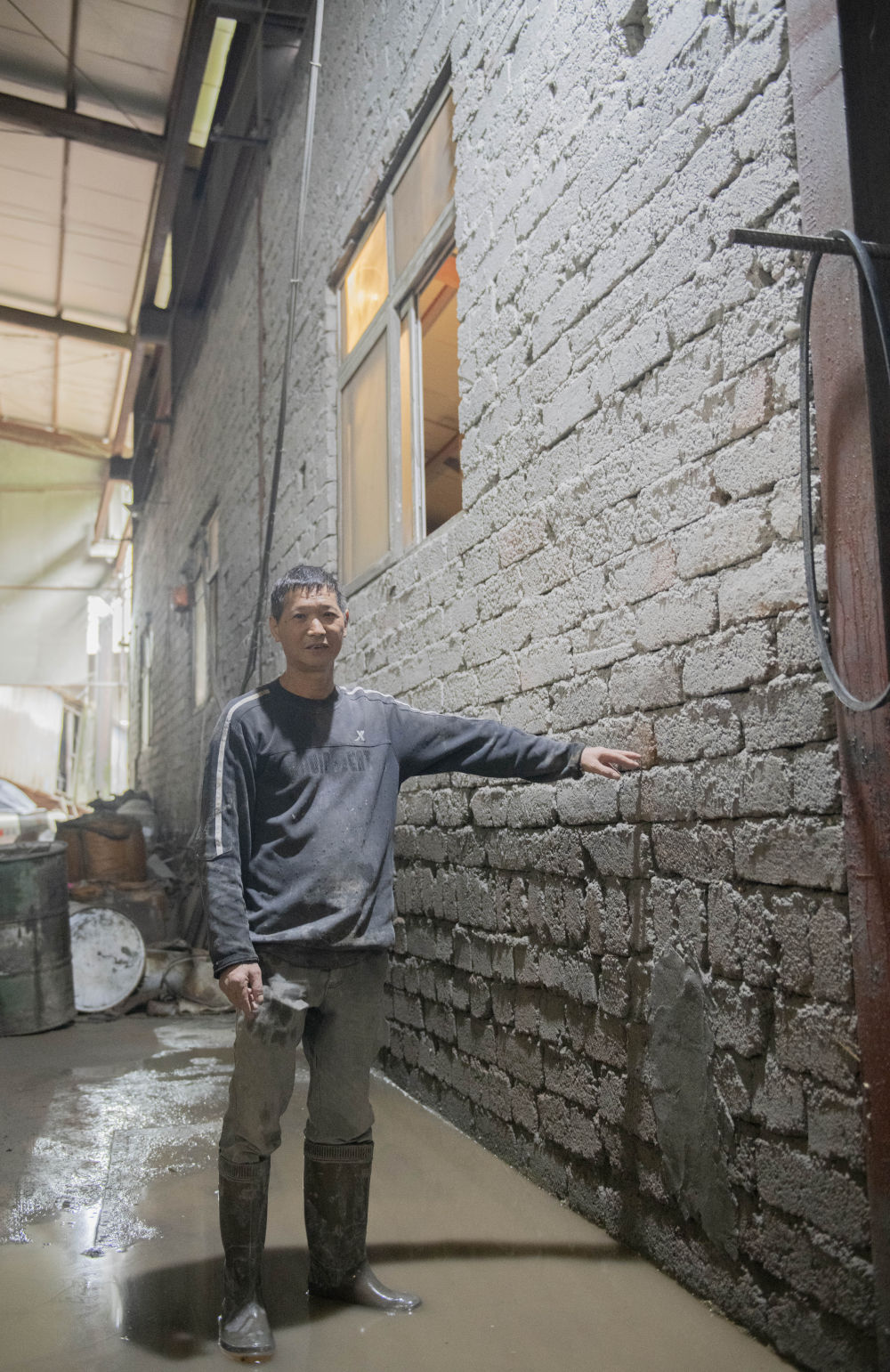 自力更生,生產(chǎn)自救。在東臨溪鎮(zhèn)臨溪村,金童水泥有限公司員工汪連枝正和同事們搶修被洪水浸泡后的設(shè)備,全力以赴為復(fù)工復(fù)產(chǎn)做準(zhǔn)備。記者走訪(fǎng)看到,這里處處有被水浸泡的印記,廠(chǎng)區(qū)后方還有山體坍塌留下的泥土。