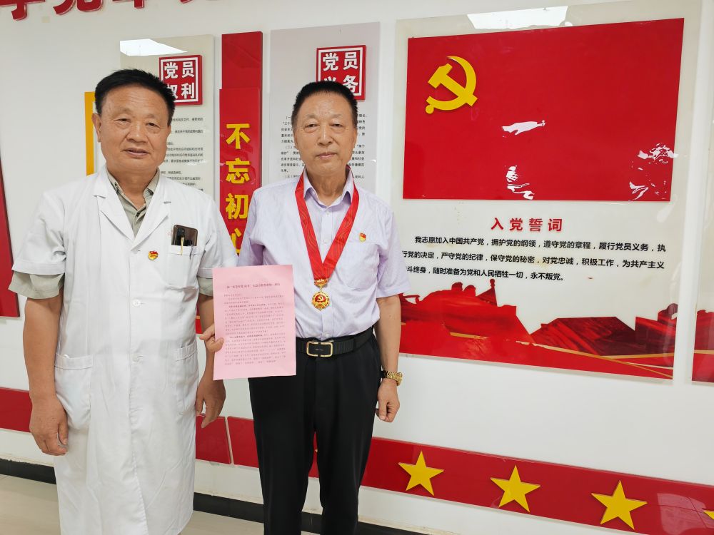 為李長海頒發(fā)紀念章的是西安市高陵區(qū)醫(yī)院退休黨支部書記杜軍政,從2021年至今,他已經為6名黨員頒發(fā)過“光榮在黨50年”紀念章?!懊恳淮晤C發(fā)紀念章,都會聽老黨員講一講他們的故事,都是一次精神的洗禮和傳承?!?/p>