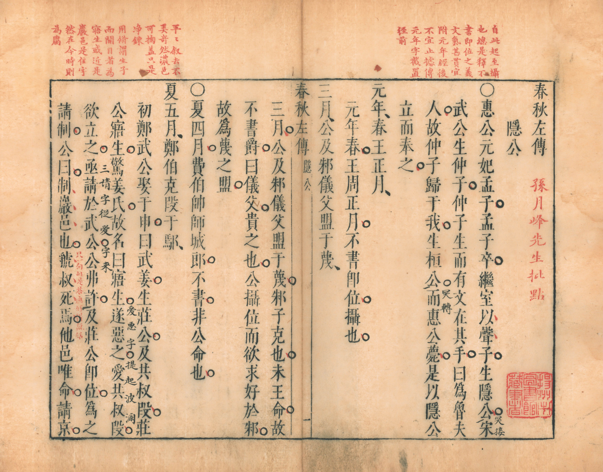大運河最早出現(xiàn)在古籍中是在春秋時期。揚州市圖書館館藏明萬歷四十四年孫礦批點、閔齊伋刻朱墨套印體《春秋·左傳注》記載,“哀公九年,吳城邗,溝通江淮”,公元前486年,吳王夫差子承父業(yè),開始了北伐征程,他吸取了父親兵敗的教訓(xùn),便另辟蹊徑在長江與淮河之間挖了一條人工運河。
